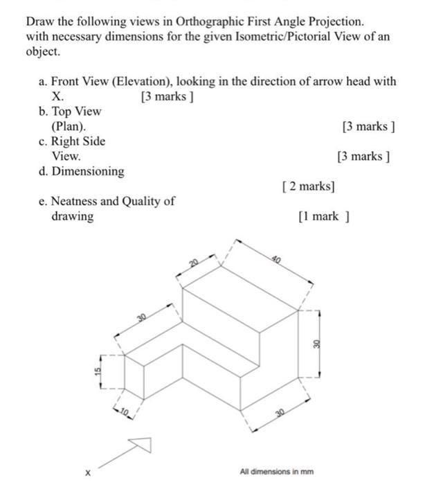 Solved Draw The Following Views In Orthographic First Angle Chegg Com